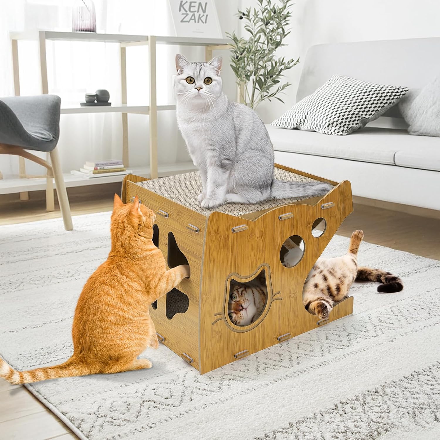 Protect Your Furniture: No more cats going to town on your furniture, WRINGKIT cat scratching house offers designated clawing and scratching areas, help cats unleash their nature and improve their health, also well protect furniture