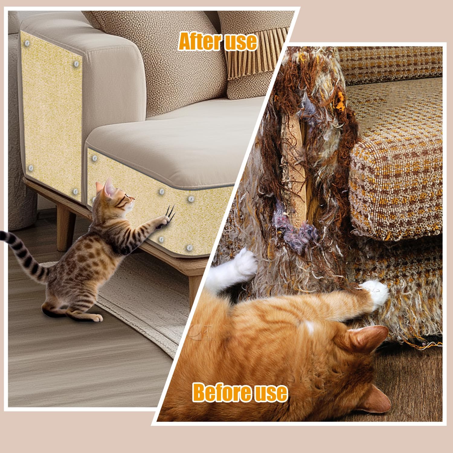 【Multifunctional Couch Scratch Protector From Cats】This Cat Scratcher Mat is both a playground for cats to scratch their claws and a cat furniture protector. It can be installed without tools and is easy to use, allowing you to easily create a harmonious home environment!