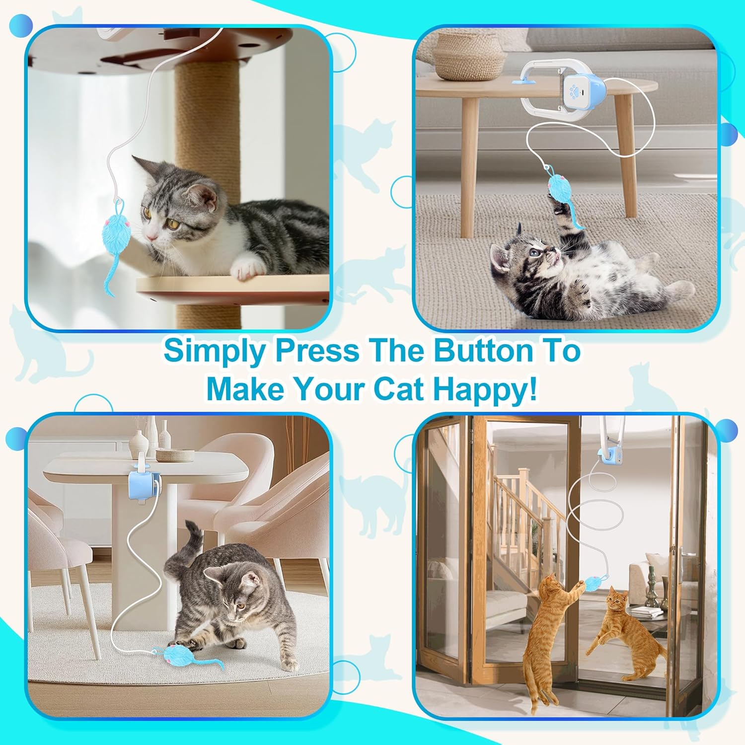 🐭🐭【𝗨𝗦𝗕 𝗖𝗵𝗮𝗿𝗴𝗶𝗻𝗴 & 𝗗𝘂𝗿𝗮𝗯𝗹𝗲 𝗠𝗮𝘁𝗲𝗿𝗶𝗮𝗹】 Our cat stimulation toy comes with a built-in rechargeable battery, eliminating the hassle of constantly replacing batteries. You can easily charge the toy using the included cable. With USB charging, our interactive cat toy works for 4 hours on a full 2-hour charge. Be sure to charge the moving cat toy before your first use. Importantly, this remote-controlled mouse toy is made from high-quality ABS and safe materials, ensuring it is sturdy and scratch-resistant. The elastic string movement produces less noise than other cat toys, so it won’t distract you or scare your beloved cat.