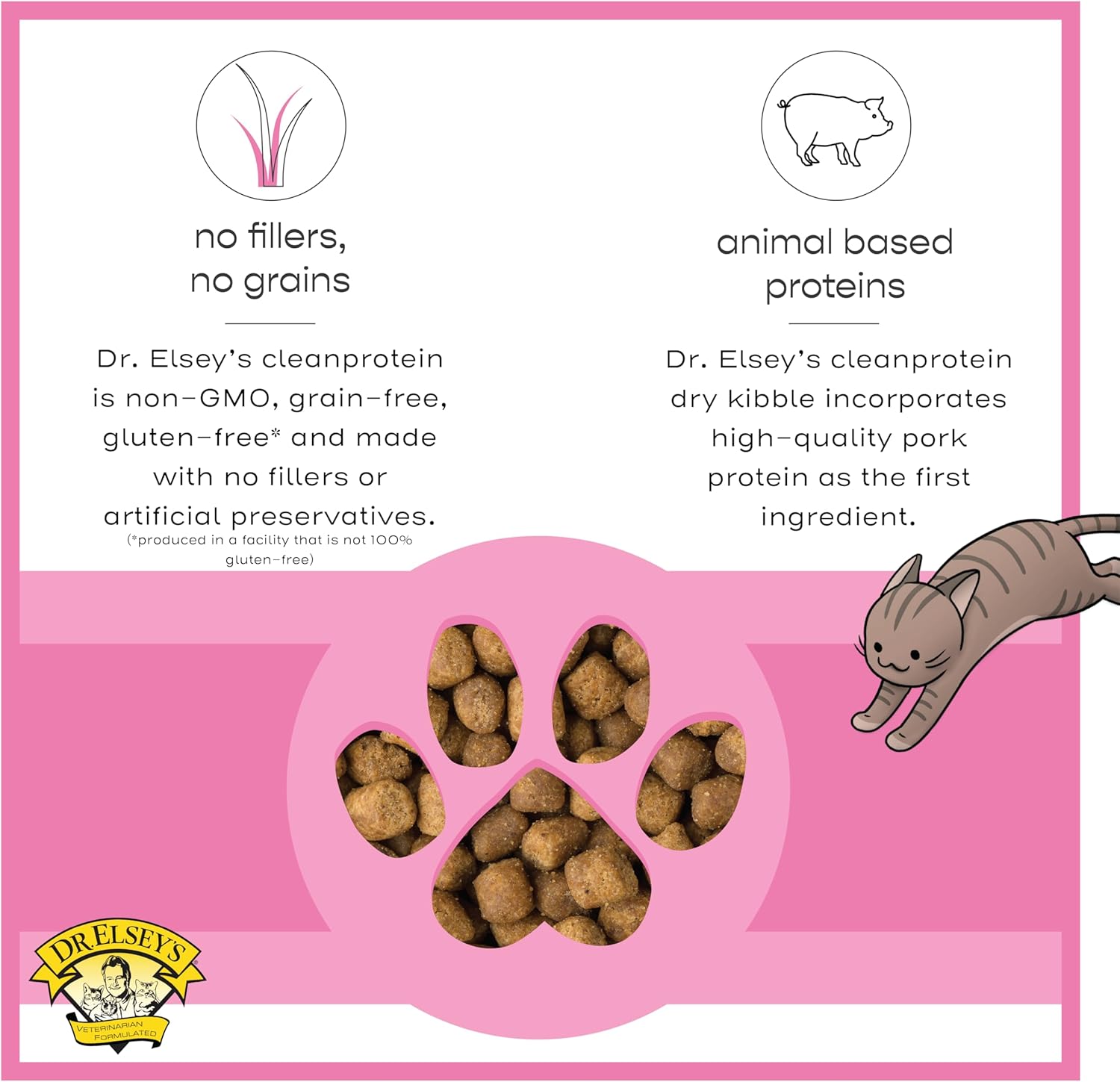 Inspired by the protein levels found in a cat’s natural prey, over 95% of the protein found in Dr. Elsey’s cleanprotein Pork Recipe Grain-Free Dry Cat Food is animal-based. With high quality pork as the first ingredient, each bag delivers a guaranteed minimum of 57% crude protein. Dr. Elsey’s Pork Cat Kibble is veterinarian formulated with high protein levels and no added oxalates to support the nutritional needs of ALL cats – active, overweight and diabetic. Our Pork kibble effectively promotes a healthy, active lifestyle for your cat or kitten. Feeding animal-based protein effectively curbs your cat’s appetite and promotes healthy kidney function at every age. Veterinarian formulated with high protein levels and oxalate-free ingredients. 100% satisfaction guarantee or your money back!