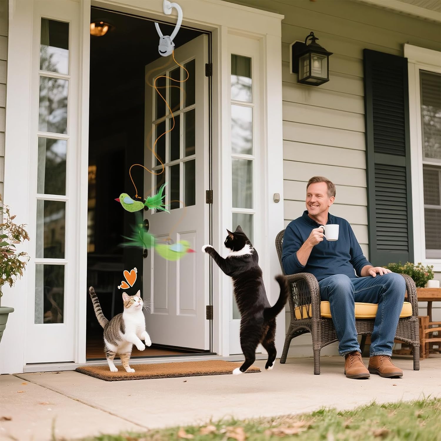 Interactive Door Hanging Cat Toy – Electric flying cat toy for indoor cats and outdoor Cats Keep your feline entertained for hours with this automatic flying bird cat toys for indoor cats! The lifelike fluttering motion and feather attachment stimulate your cat’s natural hunting instincts, cat bird toy flying perfect for bored indoor and outdoor adult cats and kittens.