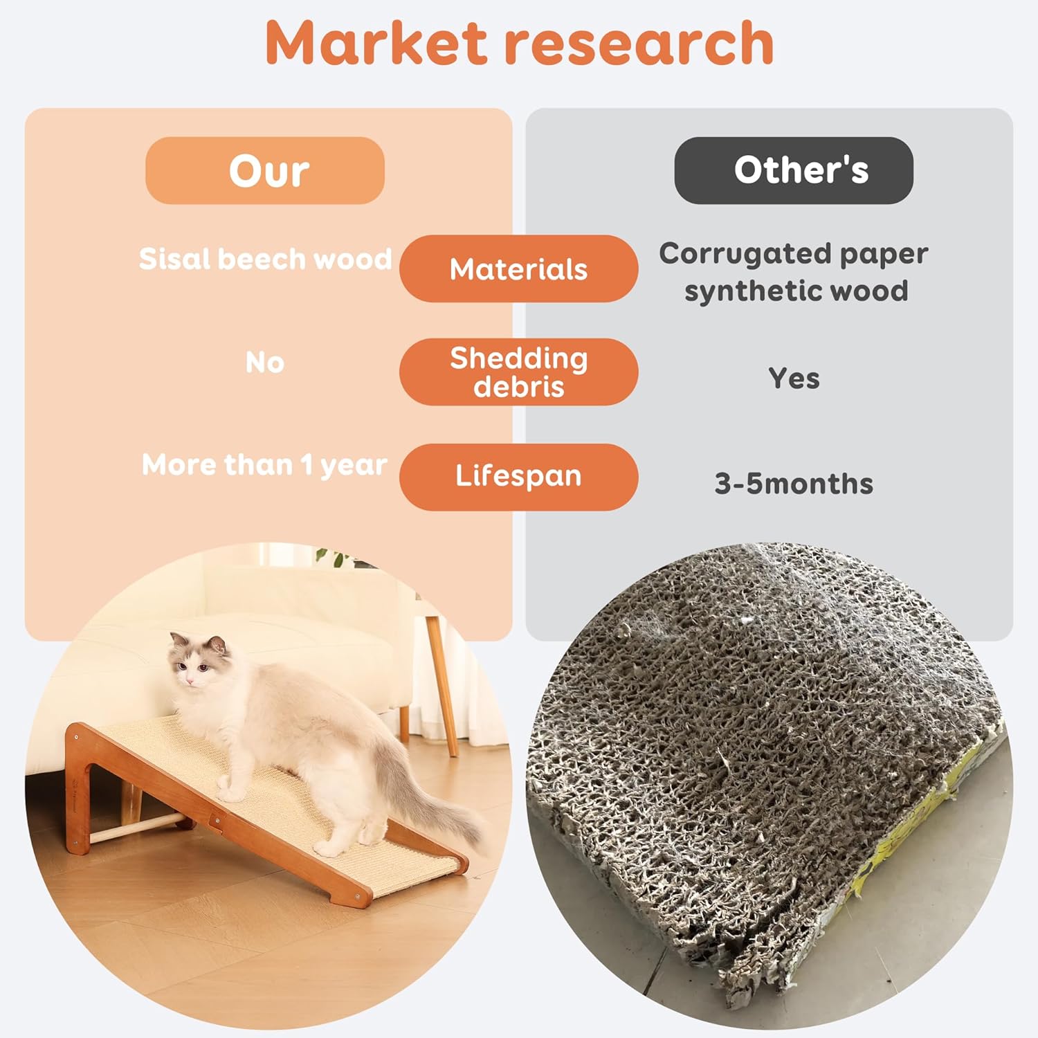 【Strong and durable】High-Quality beechwood base made from sturdy and durable beechwood, the L-shaped design ensures stability and prevents tipping, providing a safe scratching experience for your cat.