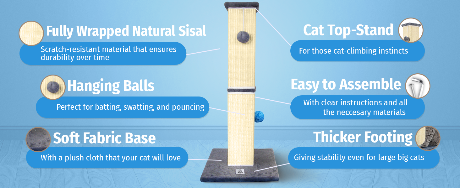 DURABLE: Crafted from natural sisal, sturdy wood and premium materials, this cat scratching tower is designed to endure your pet’s vigorous scratching and clawing sessions.