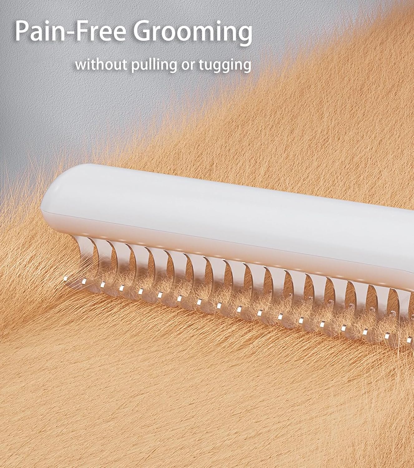 Pet-Friendly Brush for Cats & Dogs: Safety is our top priority! The tool’s teeth tips are specially polished to be soft and round, ensuring they glide gently over your pet’s skin without scratching, poking, or causing discomfort—even for pets with thin, sensitive skin (such as Sphynx cats or Chihuahuas). Unlike sharp grooming tools that may irritate your pet and make them resist brushing, our soft-tipped design lets your pet enjoy the grooming process, turning it into a bonding moment. You can groom with confidence, knowing your furry friend stays comfortable and safe.