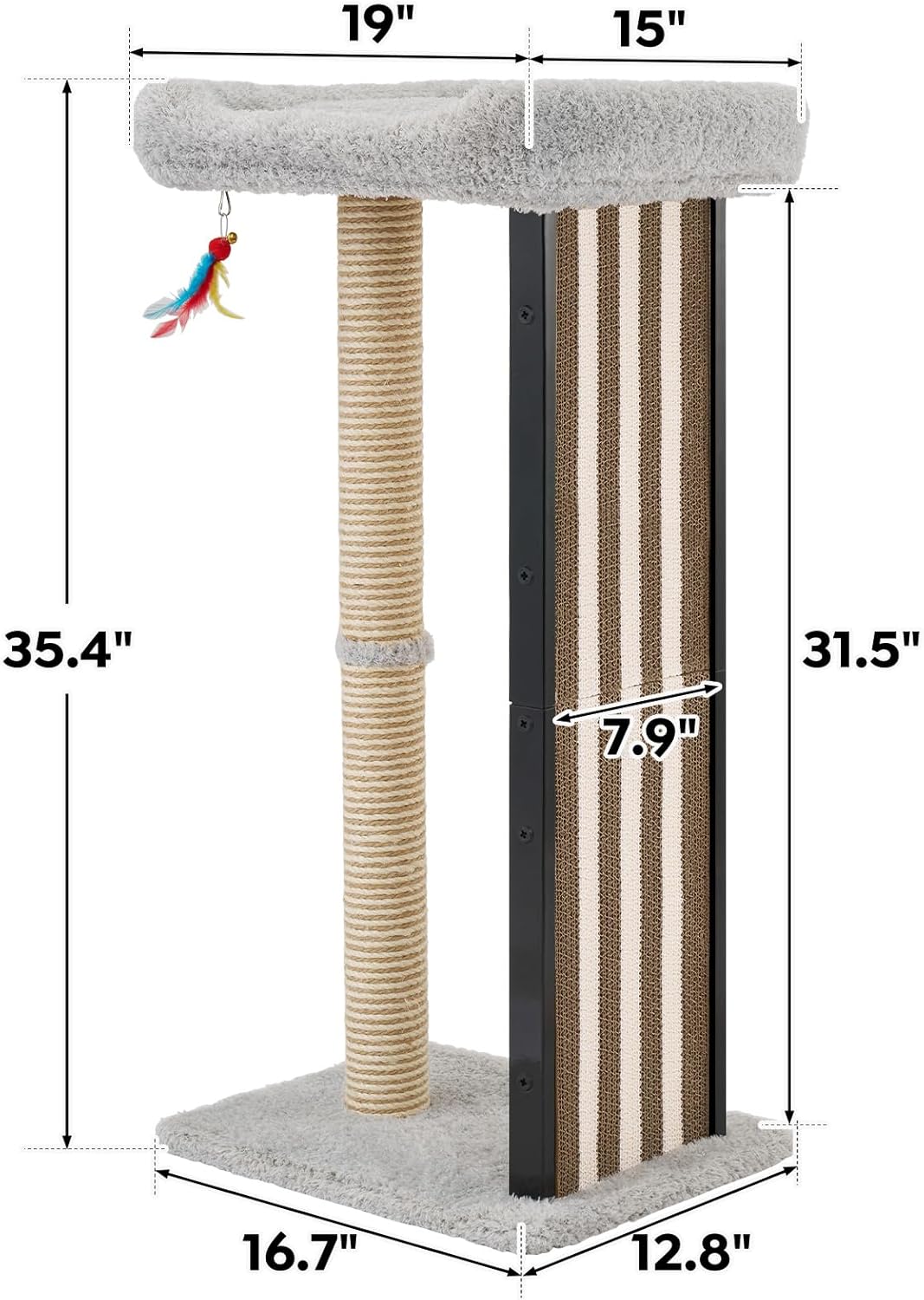 Spacious Comfy Top Perch: Your cat’s favorite spot! The large 18.9″x15.4″ plush top perch offers ample space for birdwatching. And the raised edges provide cozy neck support for naps