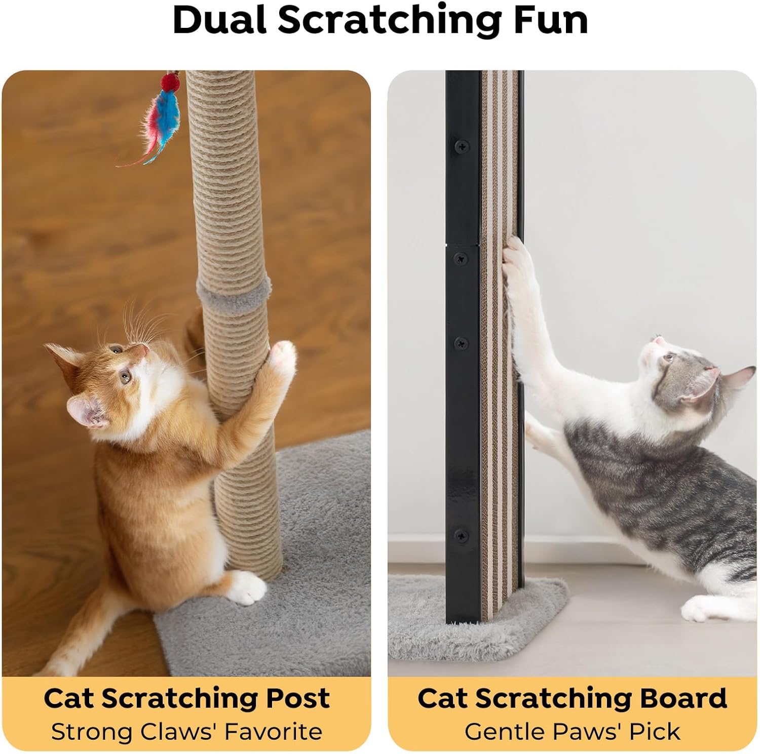 Dual Scratching Options: Give your cat choices! Let them scratch the scratching post or the scratching board—both satisfy natural instincts and protect your furniture. The perfect spot to keep claws healthy and energy unleashed
