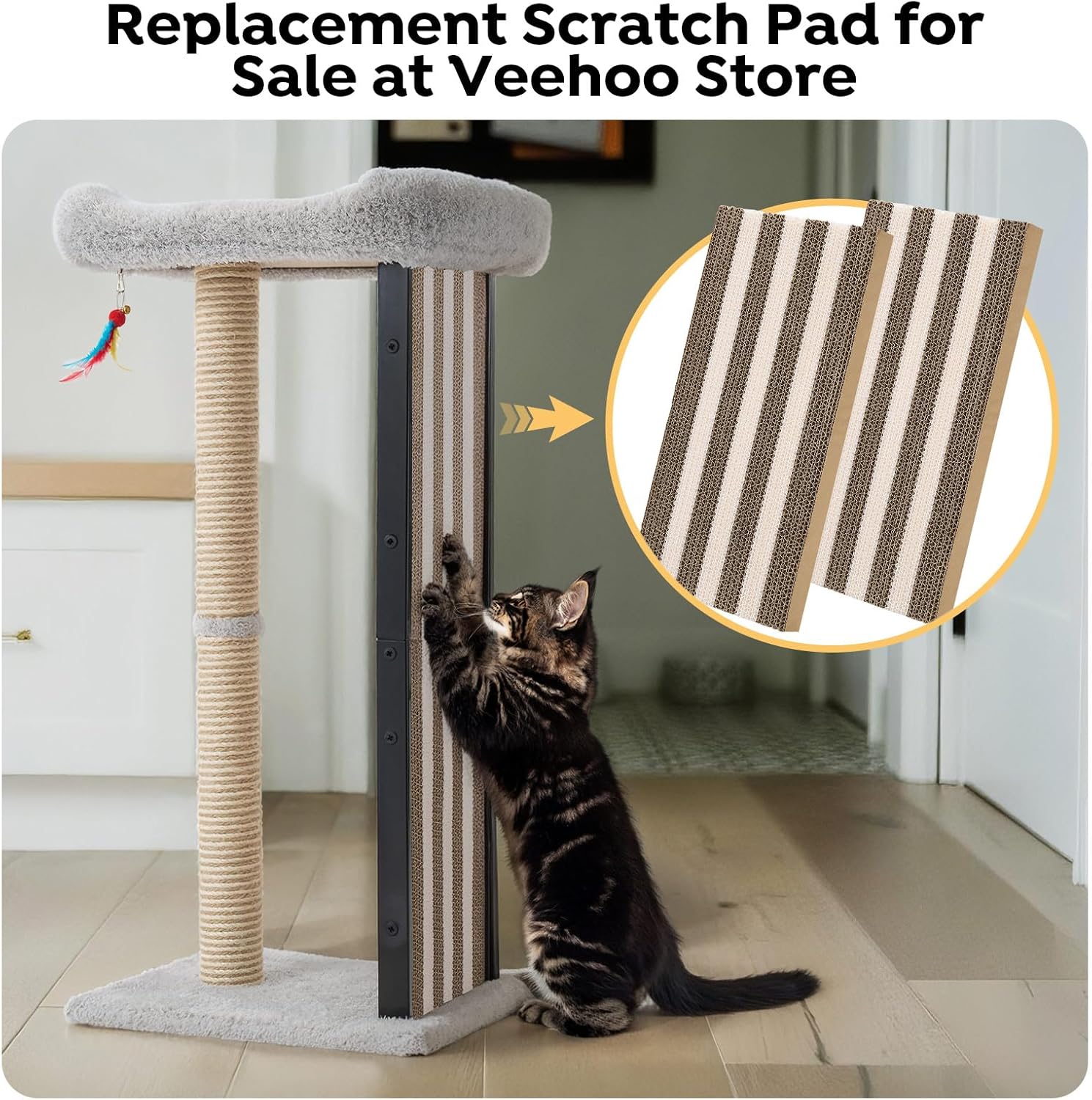 Replaceable Scratch Pads & Easy Care: The scratch pad could be replaced to extend your cat scratching post’s life, and the top perch cover is removable and machine-washable for simple, hassle-free cleaning and long-lasting use